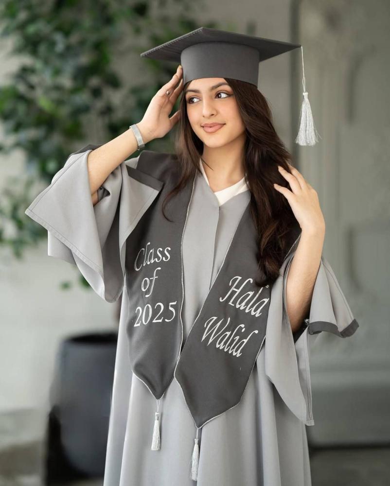 تفاصيل عباية تخرج بتفصيل خاص مع تطريز فني باسمك: