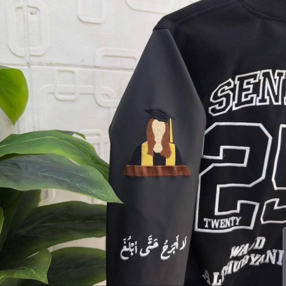 احتفل بمناسبة تخرجك بلمسة شخصية وفريدة جاكيت السينيور الخاص بنا مصمم خصيصاً ليكون ذكرى لا تنسى حيث يمكنك تخصيصه بتطريز اسمك بشكل أنيق وفريد.