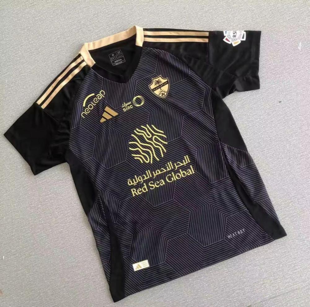 تيشيرت الأهلي السعودي الجديد باللون الأسود بتصميم عصري لمحبي الراقي. مصنوع من خامات عالية الجودة توفر الراحة والتهوية المثالية أثناء الارتداء. متوفر بجميع المقاسات، مع إمكانية طباعة الاسم والرقم على الظهر لإطلالة شخصية مميزة. اطلبه الآن من متجر رومكس