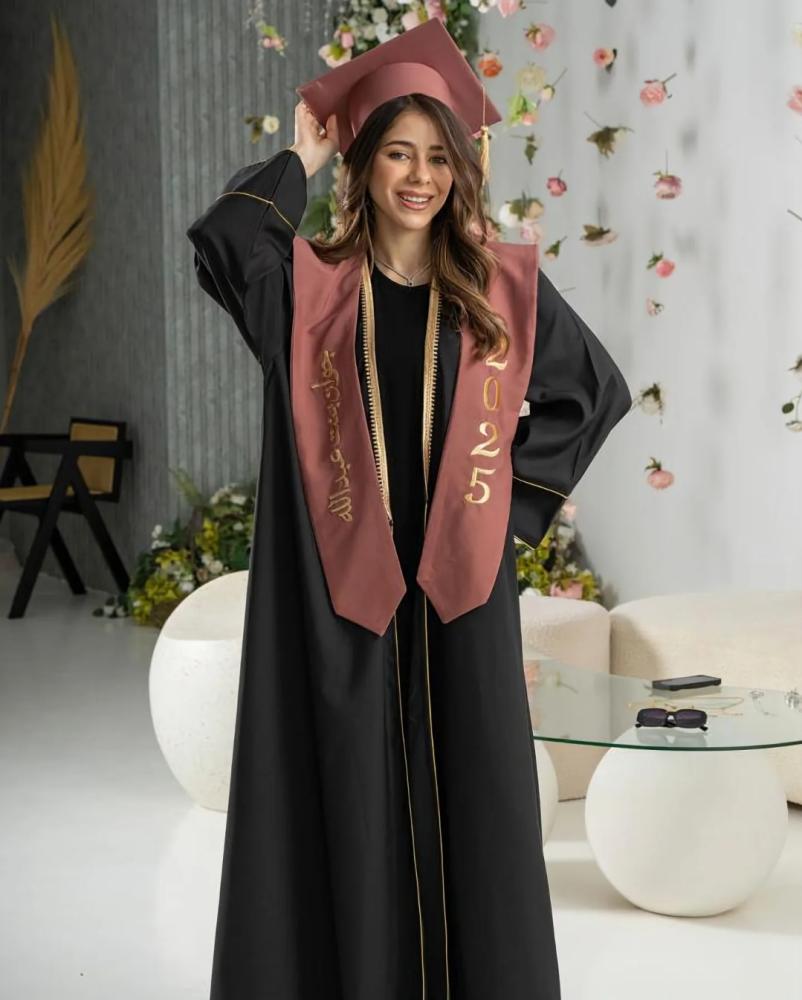 اجعلي يوم تخرجك ذكرى لا تُنسى مع عباية تخرج أنيقة بتصميم يجمع بين الكلاسيكية والعصرية. تم تصميم هذه العباية لتمنحك إطلالة راقية تجمع بين بساطة الأناقة وروعة التفاصيل العصرية التي تناسب ذوقك الرفيع، مع خامات مريحة تسمح لك بحرية الحركة طوال الاحتفال.