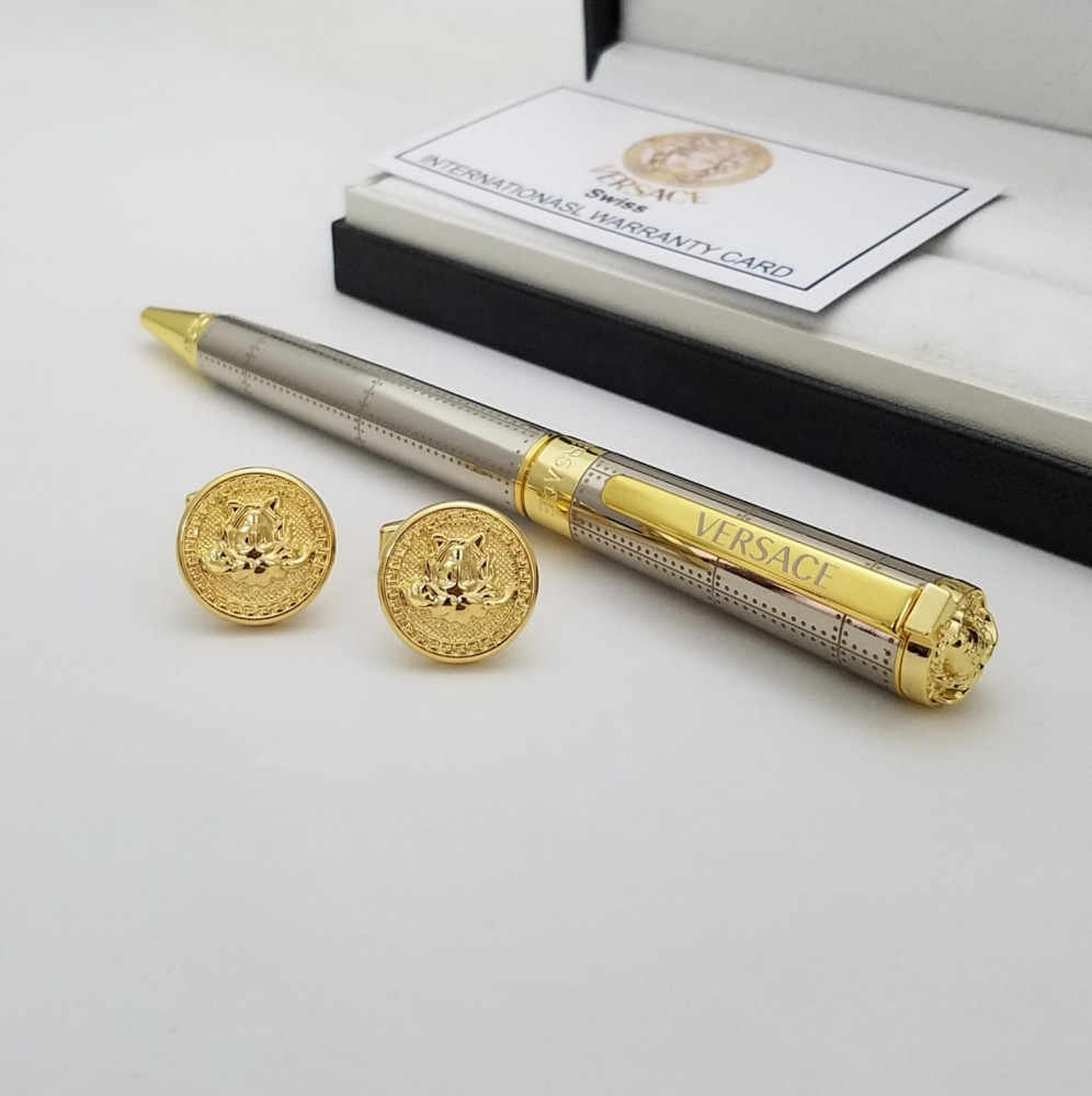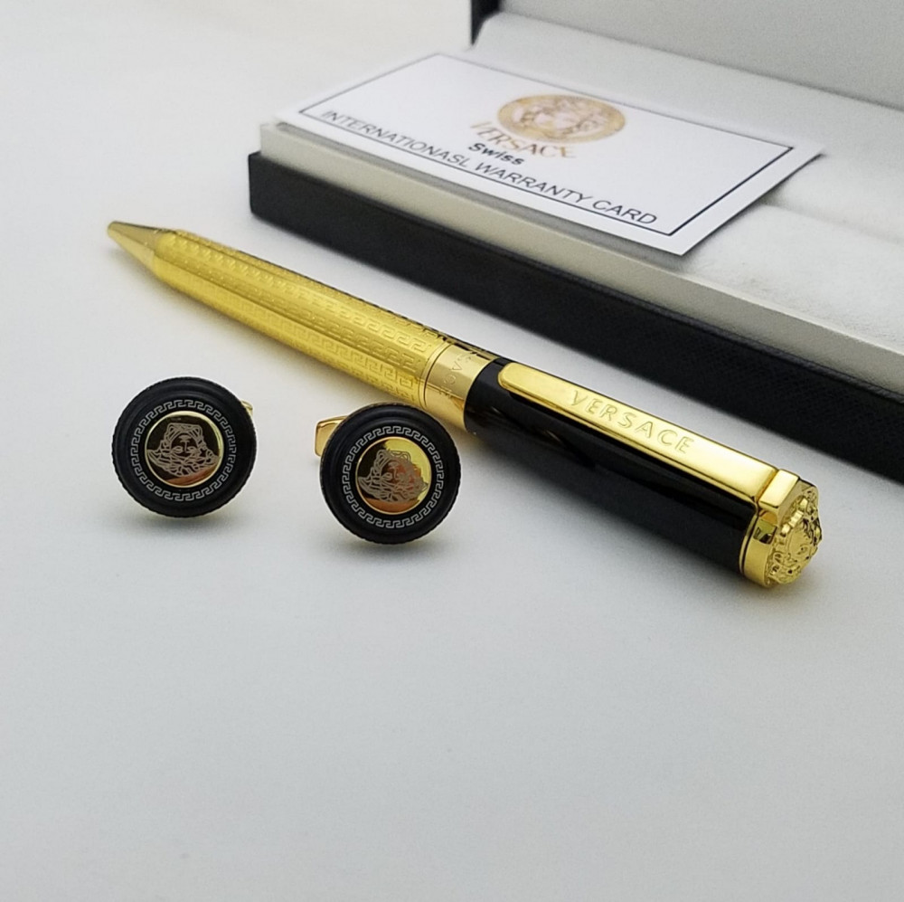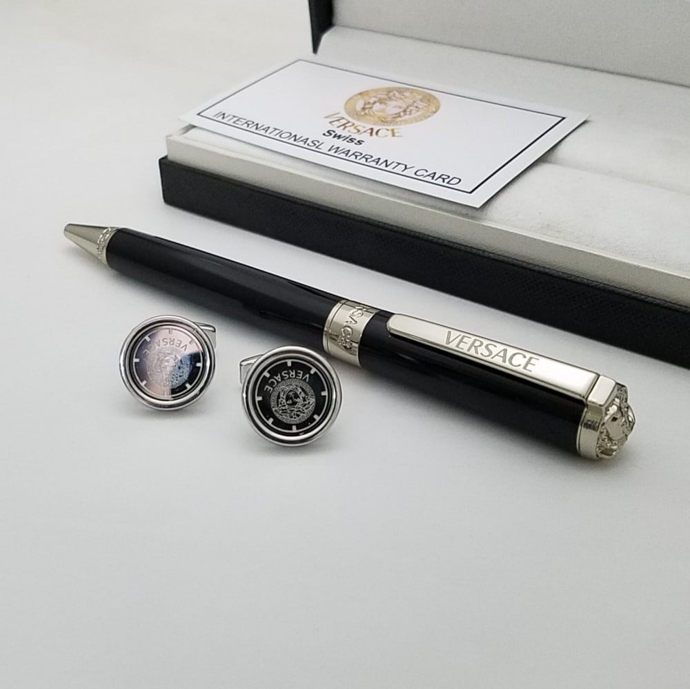 ارتقِ بأناقتك مع طقم قلم وكبك رجالي فرزاتشي الفاخر، تصميم أنيق يجمع بين الرقي والعملية. مثالي للاستخدام اليومي أو كهديّة فاخرة للمناسبات الخاصة، يتميز بجودة خامات عالية وتفاصيل دقيقة تعكس ذوقك الرفيع.