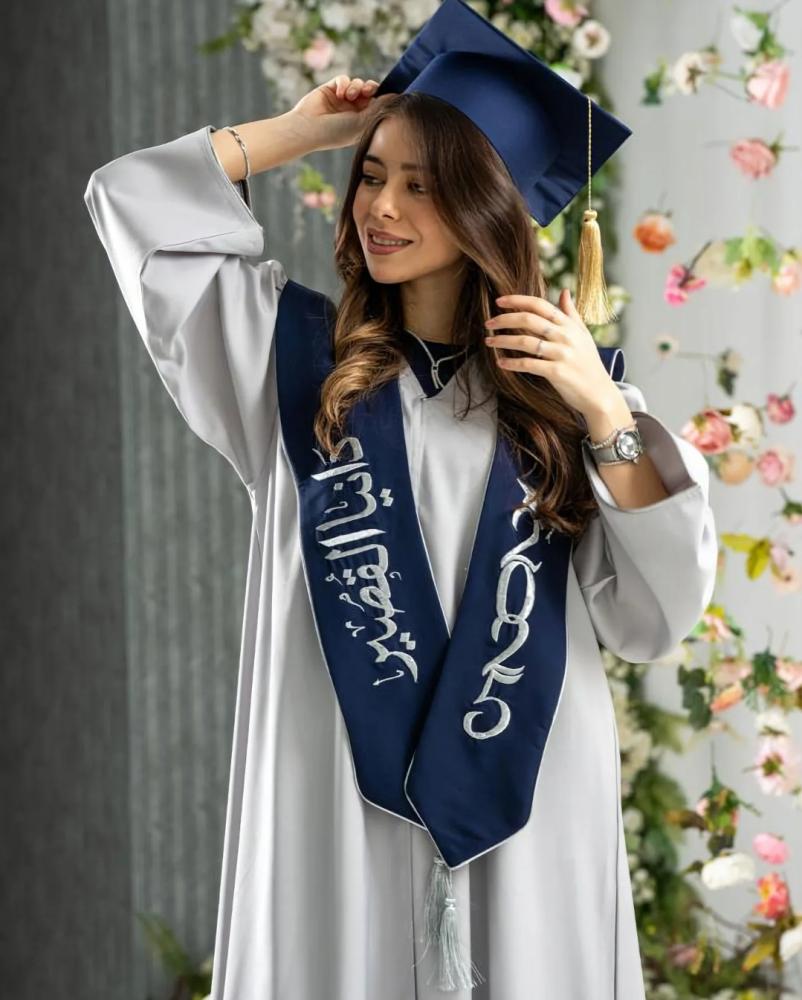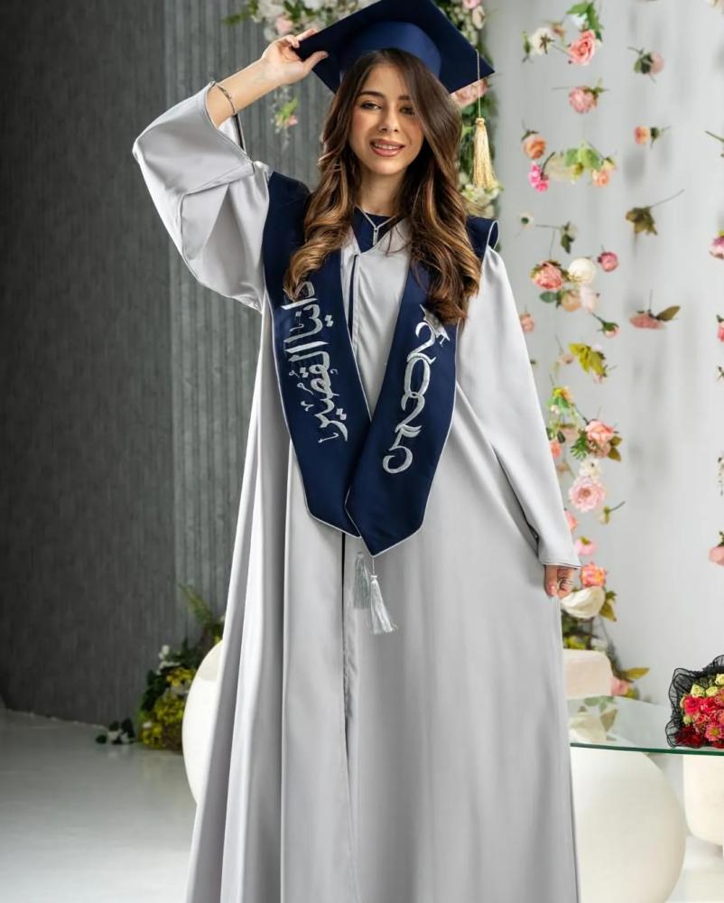 احصلي على إطلالة متكاملة وأنيقة في يوم تخرجك مع روب التخرج بلون الرصاصي الراقي، مرفق مع وشاح وقبعة كحلي، المصمم خصيصًا ليمنحك مظهرًا فخمًا واحتفاليًا يعكس فرحة الإنجاز. يأتي هذا الطقم من متجر رومكس ليجمع بين الجودة العالية والتصميم العصري في قطعة واحدة متكاملة.