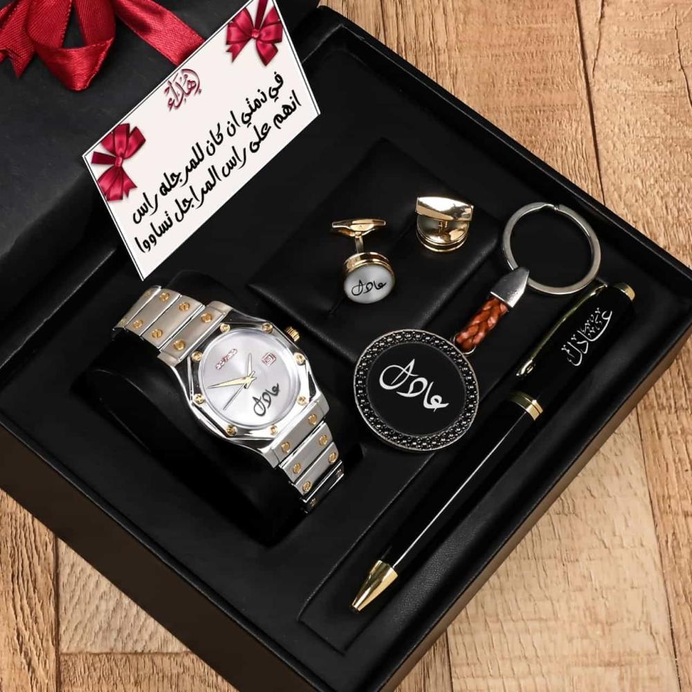 اجعل هديتك مميزة لا تُنسى مع طقم رجالي فاخر بنحت الاسم، مصمم خصيصًا للرجل الأنيق الذي يقدّر التفاصيل. يحتوي الطقم على ساعة راقية من ماركة نايس، مع قلم وميدالية بنقش الاسم حسب الطلب، بالإضافة إلى كبك كلاسيكي وعلبة فاخرة وتغليف أنيق يجعل من الطقم هدية مثالية للمناسبات الخاصة.