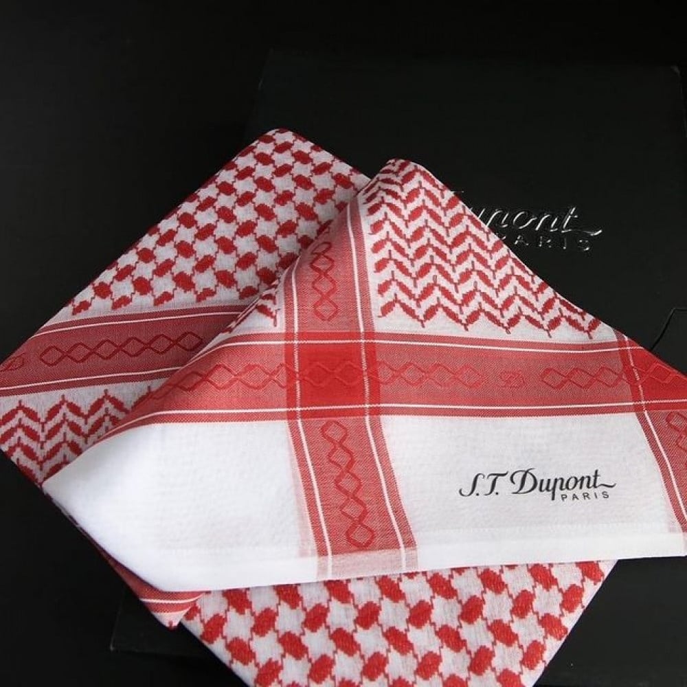 ينفرد شماغ اس تي ديبون الأحمر بنقشة خاصة وعلامة مميزة عليه تحمل اسم الماركة.