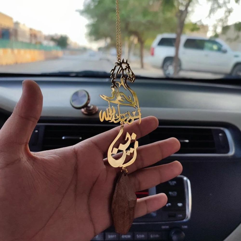 أضف لمسة شخصية فريدة لسيارتك مع تعليقة سيارة مخصصة بالاسم مع تصميم خيل أنيق. تصميم يجمع بين الرمزية الأصيلة للخيل وجمال النقش الدقيق لاسمك أو الاسم الذي تختاره، لتصبح تعليقتك أكثر من مجرد زينة، بل قطعة فنية تعكس ذوقك وشخصيتك.