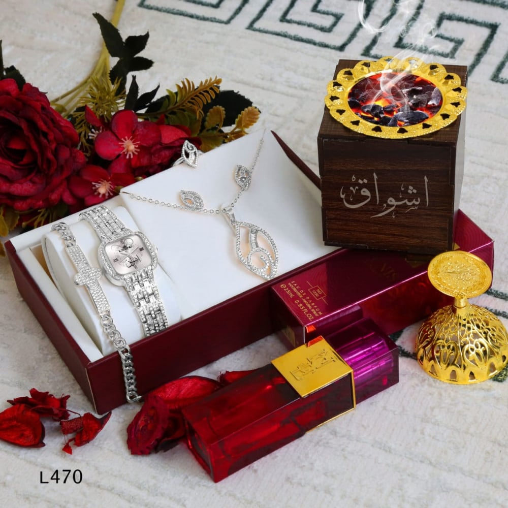 امنحي إطلالتك لمسة فريدة مع طقم نسائي تصميم الاسم حسب الطلب، الذي يجمع بين الأناقة والتفرد في قطعة واحدة. يتضمن الطقم ساعة وسلسال واسوارة وخاتم وحلق أذن، كلها مصممة بعناية مع إمكانية تخصيص الاسم لتكوني مميزة في كل مناسبة.