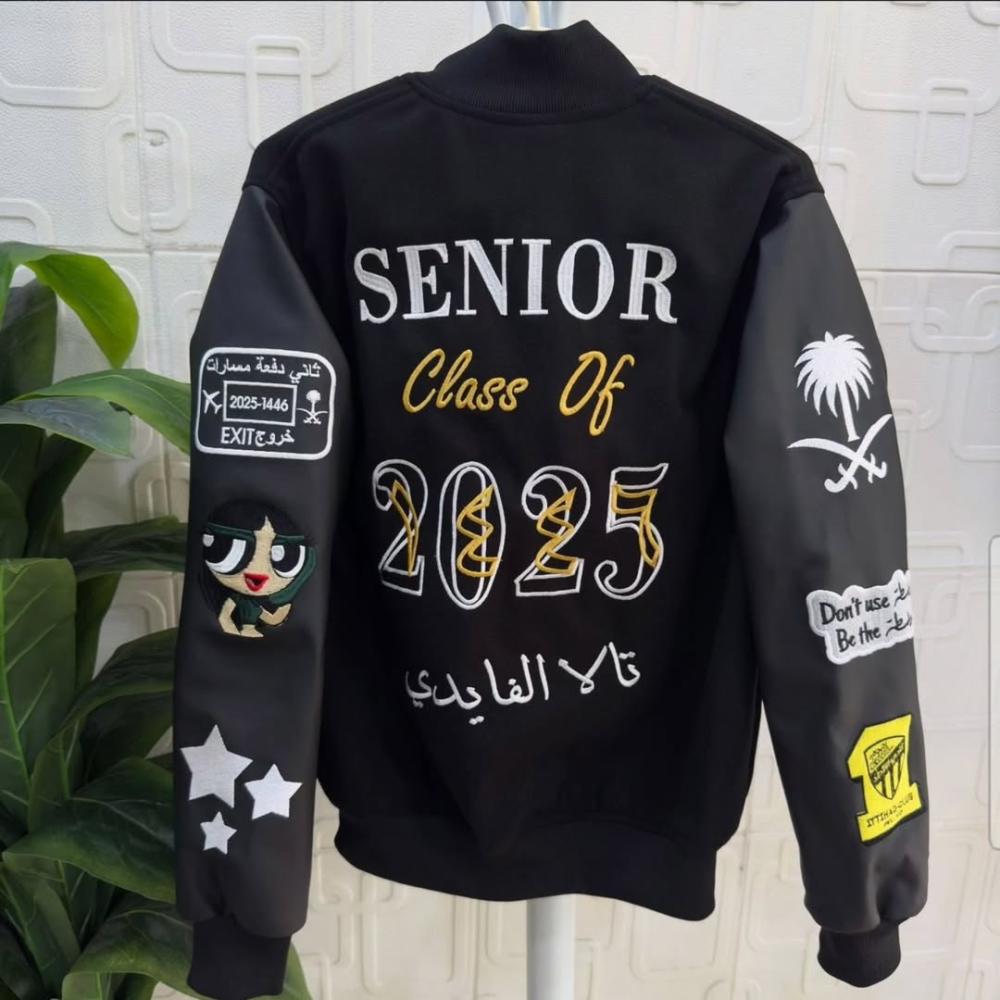 تصميم جاكيت تخرج مطرز بالاسم احتفل بمناسبة تخرجك بلمسة شخصية وفريدة جاكيت التخرج الخاص بنا مصمم خصيصًا ليكون ذكرى لا تنسى حيث يمكنك تخصيصه بتطريز اسمك بشكل أنيق وفريد.