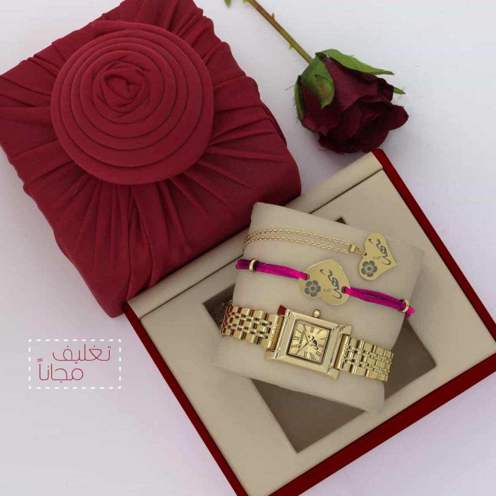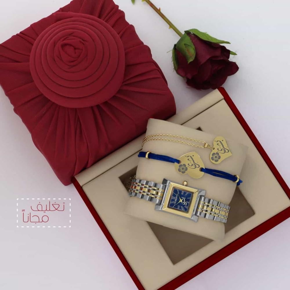 تميّزي بإطلالة تجمع بين الفخامة واللمسة الخاصة مع طقم نسائي راقٍ يتكوّن من ساعة بتصميم كارتير الفاخر، مع مجموعة أكسسوارات منقوشة باسمك بدقة ليزر، لتمنحك هدية مثالية أو قطعة تليق بك بكل مناسبة.